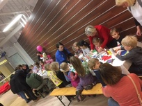 Adventtiluukun avautumisen yhteydessä järjestimme joulukorttiaskartelupajan kerhotilassa. Tarjosimme myös postimerkin pajassa askarreltuihin kortteihin, eli kortit sai käydä pudottamassa postilaatikkoon jo kotimatkalla.